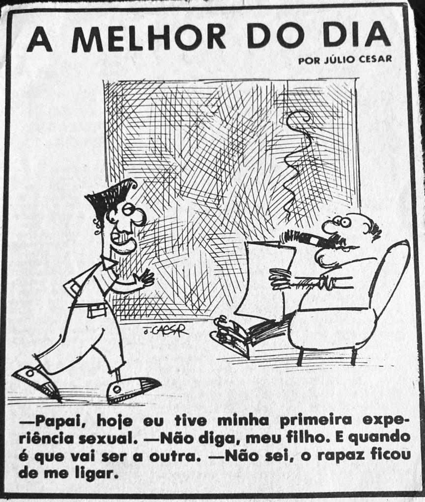 Piadinhas diárias (anos 73/85) Compartilhe isso: Compartilhar no X(abre em nova janela) 18+ Compartilhar no Facebook(abre em nova janela) Facebook Share on Pinterest(abre em nova janela) Pinterest Curtir Carregando...